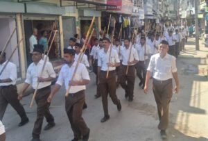मालपुरा में राष्ट्रीय स्वयंसेवक संघ का भव्य पथ संचलन, पुष्प वर्षा से हुआ स्वागत
