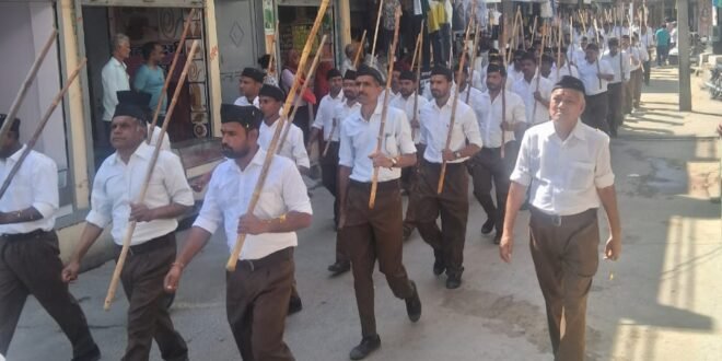 मालपुरा (टोंक)। राष्ट्रीय स्वयंसेवक संघ मालपुरा के तत्वावधान में रविवार को भव्य पथ संचलन का आयोजन किया गया। कार्यक्रम में सैकड़ों गणवेशधारी स्वयंसेवकों ने उत्साहपूर्वक भाग लिया।